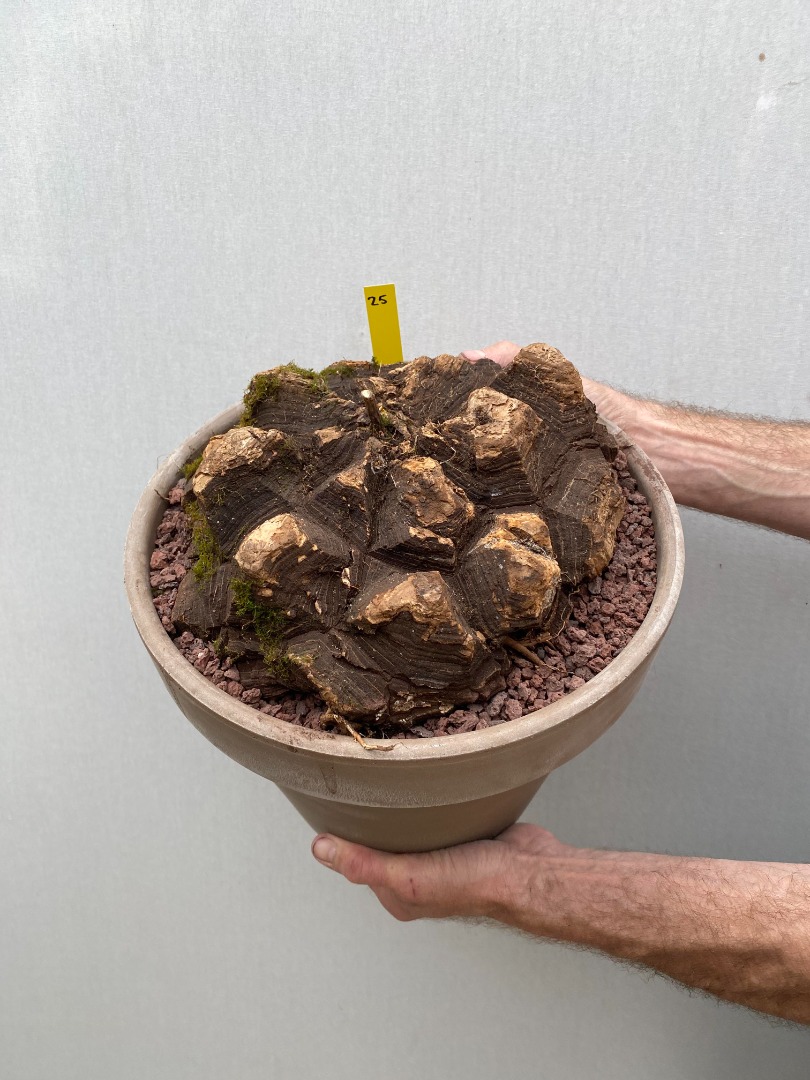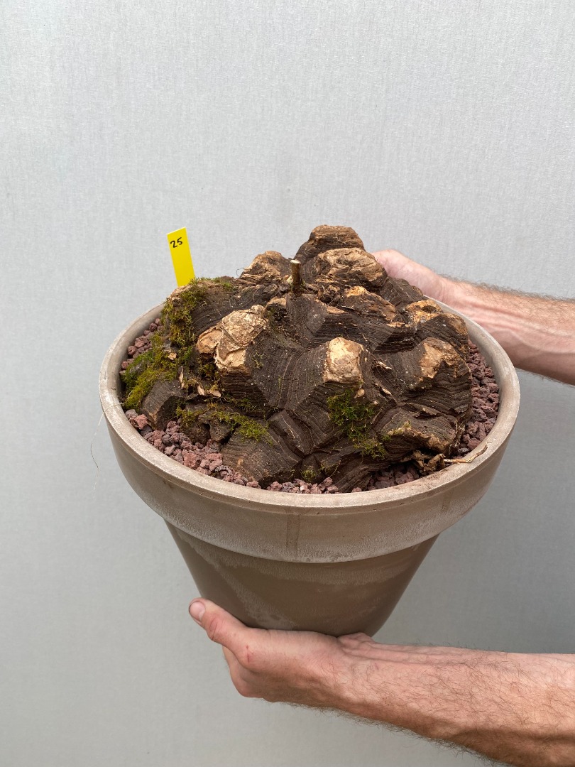 Remarks: Dioscorea mexicana is a very beautiful caudex plant. The Dioscorea mexicana has a partially to completely above-ground caudex with a thick, woody outer layer. This plant grows slowly but can reach a diameter of 90 cm and a height of 20 to 25 cm. The tuber/caudex of the Dioscorea mexicana is divided into angular plates that bulge with age, separated by deep fissures. The runners with heart-shaped leaves that grow from the caudex / tuber can grow very long before dying in winter.