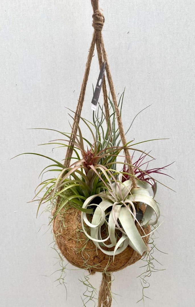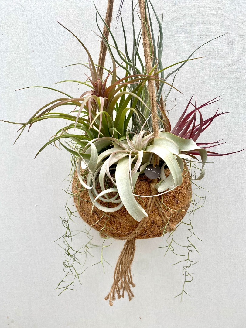 Kokodama with Tillandsia: this beautiful Kokodama pendant is filled with different types of Tillandsia / air plants. The Tillandsia is mounted on gray floral foam, this floral foam does not absorb water so that the Tillandsia can dry properly. Every pendant is handmade and there can always be small differences.
