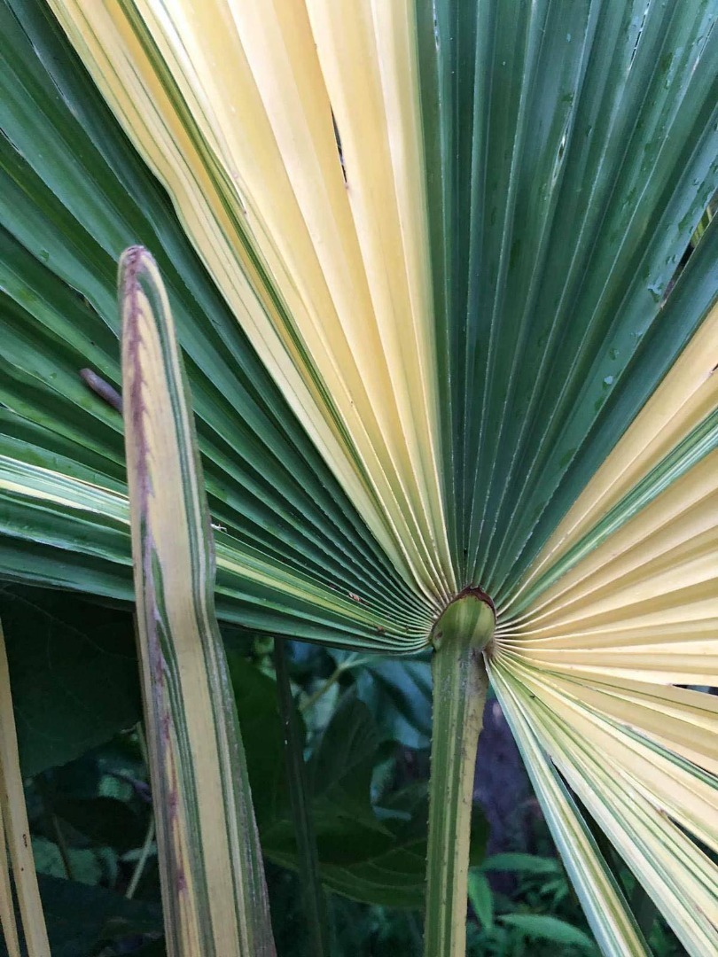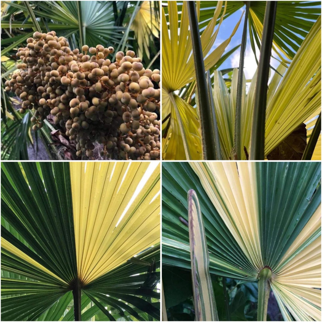 Seeds come from the palms shown in the photo in our own garden. The cross is Trachycarpus Fortunei Variegata X Trachycarpus Fortunei Variegata.