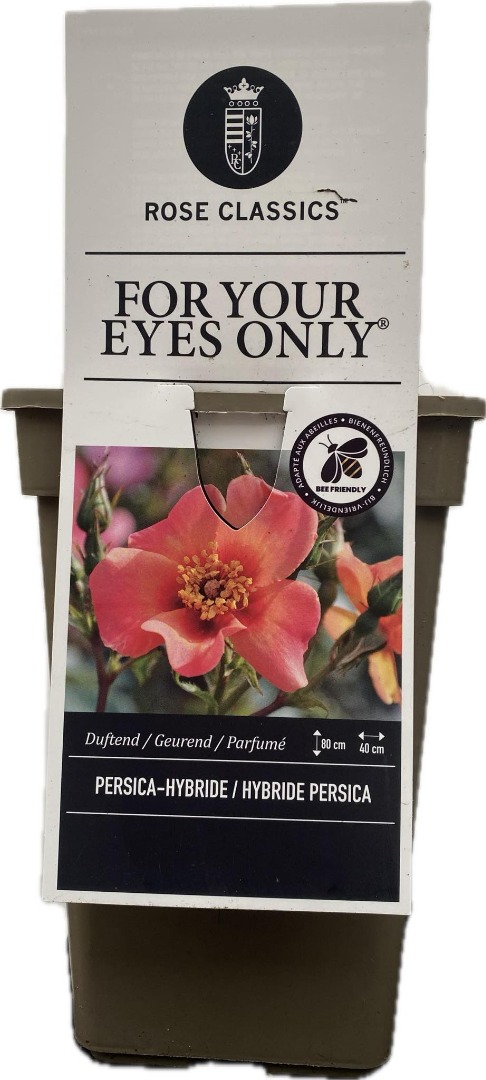 Remarks: Rosa Persica For Your Eyes Only comes from the specially selected "Jan Spek Roses" series. These beautiful Persica hybrids are specially selected. They are known for their quality plants and distinctive flowers and scent.